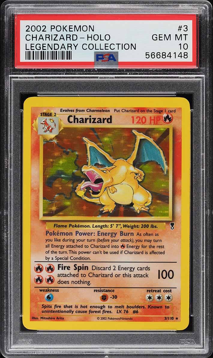 Die Reverse-Holo-Karten aus der Legendary Collection sind aufgrund ihrer geringen Druckauflage heute besonders begehrt unter Sammlern. Insgesamt wurden nur 85 Exemplare von Charizard mit der höchstmöglichen PSA-10-Bewertung ausgezeichnet. Der aktuelle Marktwert beträgt bis zu 56.250 US-Dollar (ca. 47.900 €).
