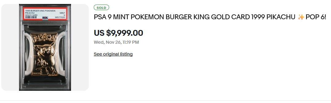 Im November 1999 ging die Pokémon Company eine Kooperation mit der US-amerikanischen Schnellrestaurantkette Burger King ein. Beim Kauf eines beliebigen Menüs konnten Kunden eine von sechs Pokémon-Goldkarten für jeweils 1,99 $ erhalten. Die Karten kamen entweder in einer blauen oder roten Box und enthielten zusätzlich einen Pokéball aus Plastik sowie ein Echtheitszertifikat von Nintendo of America. Zur Auswahl standen Glurak, Pummeluff, Mewtu, Pikachu, Quaputzi und Togepi.