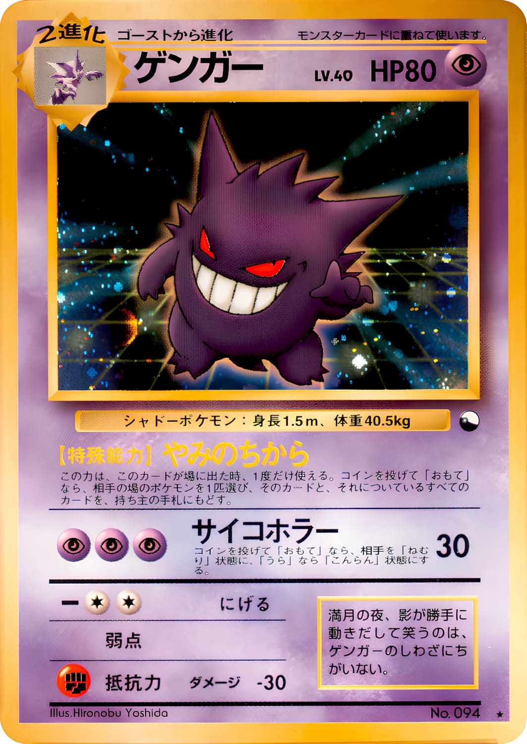 Das hinterlistige Schatten-Pokémon Gengar ist die wertvollste Promokarte der Masaki-Kampagne. Insgesamt wurden etwa 36.000 Apollo-Karten gegen das holografische Gengar eingetauscht. Am 25. September 2025 sicherte sich ein Sammler das weltweit einzige CGC-10-Pristine-Exemplar für beeindruckende 39.850 €. Ein originalgetreuer Nachdruck ist in der japanischen Erweiterung Pokémon Card Web aus dem Jahr 2001 erschienen.