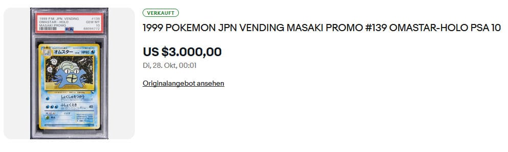 Weltweit existieren nur 36 Geowaz-Promokarten mit der höchstmöglichen PSA-10-Bewertung. Eine dieser Karten wurde im März 2024 für 1.865 € verkauft.