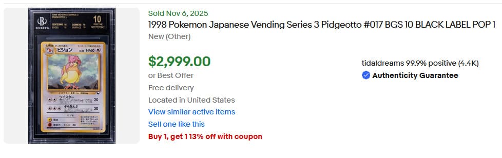 Eine makellose BGS-10-Karte mit Black Label wurde am 28. September 2025 für 26.600 € versteigert.