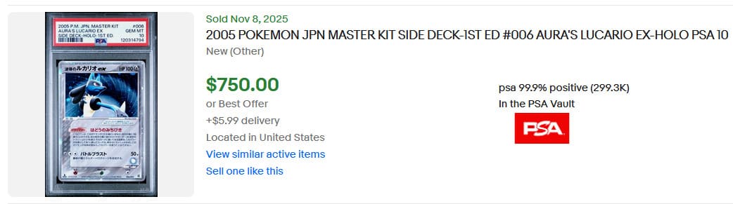 Auras Lucario-ex war Teil eines Deck-Kits, das im Juli 2005 in Japan zur Feier des Kinofilms Lucario und das Geheimnis von Mew erschienen ist. Das Kit enthielt zwei spielbereite Halbdecks, ein Side-Deck und zahlreiches Zubehör. Die Karte wurde nie außerhalb Japans veröffentlicht. Einwandfreie Exemplare wechselten zuletzt für bis zu 640 € den Besitzer.
