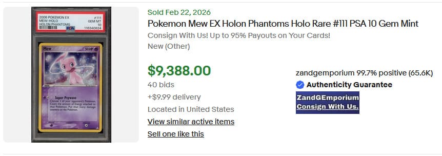 Am 22. Dezember 2025 wurde eine BGS-8.5-Karte des Art Academy Mew für 22.050 € versteigert.