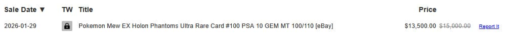 Neben der Secret-Rare-Karte von Mew enthält EX Holon Phantoms auch eine exklusive holografische Sammelkarte von Mew-ex, die mit ihrer energiegeladenen Illustration beeindruckt. PSA-10-Exemplare von Mew-ex wurden zuletzt für bis zu 13.500 US-Dollar(ca. 11.600 €) verkauft.