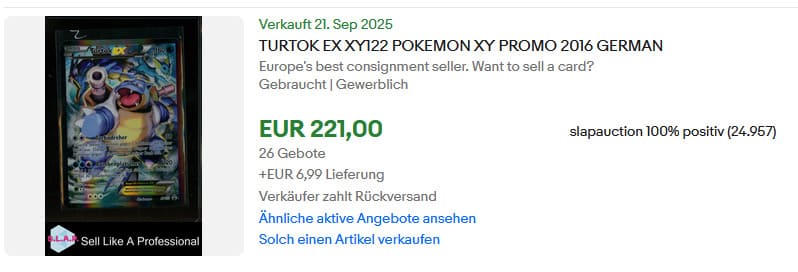 Turtok-EX aus der Roten & Blauen Kollektion besticht durch eine gemäldeartige Darstellung der mächtigen Panzer-Schildkröte, begleitet von dem charmanten Blubbblasen-Pokémon Aquana und dem furchterregenden Grausam-Pokémon Garados. Dieses begehrte Sammlerstück erzielt derzeit Preise von bis zu 220 €. Exemplare in PSA-10-Qualität sind extrem rar und werden sogar für bis zu 5.850 € verkauft.