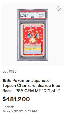 Obwohl die Karte nicht makellos ist, zählt sie aufgrund ihrer extremen Seltenheit zu den begehrtesten Schätzen im Pokémon-Sammelkartenspiel. Am 19. September 2025 endete die Auktion mit einem Höchstgebot von 550.000 US-Dollar (ca. 468.000 €).
