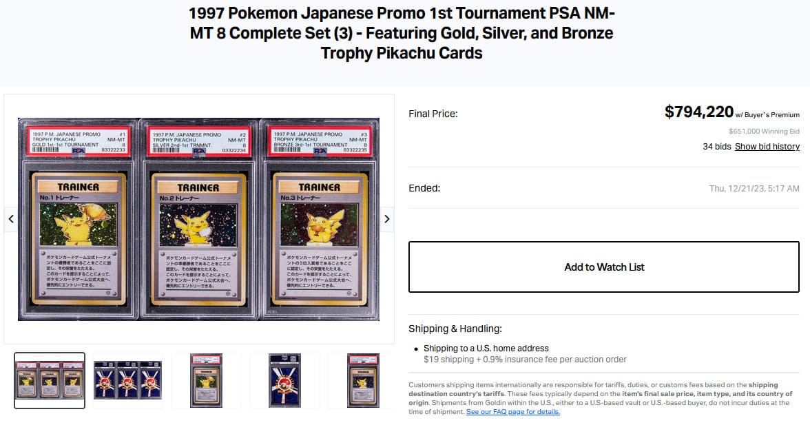 Aber auch einzelne Trophy-Pikachu-Karten erreichten in den vergangenen Jahren beeindruckende Preise von bis zu 444.000 US-Dollar.