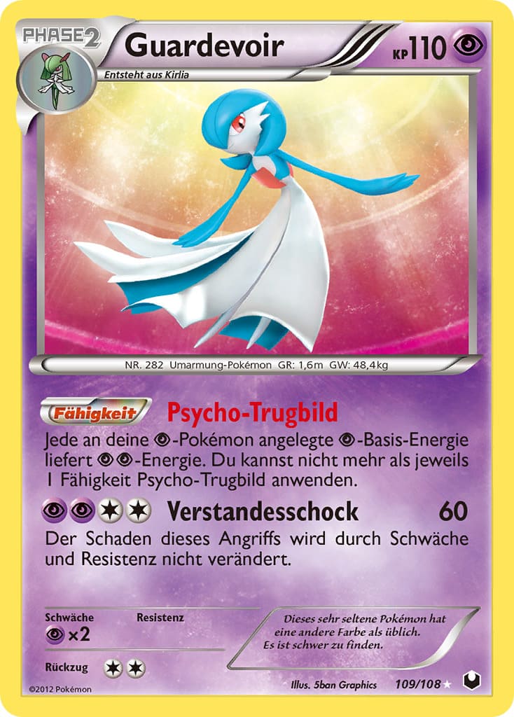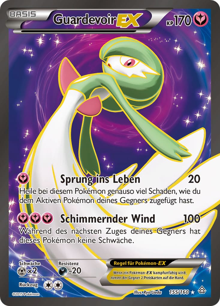 Bereit für einen Tanz? Das Psycho-Pokémon Guardevoir versprüht eine geheimnisvolle und mystische Aura. Aufgrund seines grazilen und zerbrechlichen Körpers ist es nicht in der Lage, physische Attacken zu erlernen. Dennoch verfügt Guardevoir über besonders mächtige psychokinetische Kräfte, die es im Kampf gegen seine Gegner entfesselt. Der Legende nach kann es sogar in die Zukunft blicken und die Gedanken von Lebewesen mittels Telepathie kontrollieren. In diesem Artikel werfen wir einen Blick auf die begehrtesten Pokémon-Karten von Guardevoir.