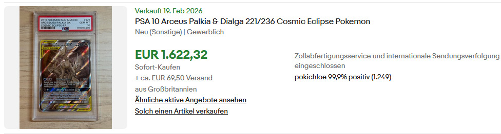 Entdecke die Macht des legendären Trios! Arceus, das mächtige Alpha-Pokémon, gilt als Schöpfer des Pokémon-Universums und beeindruckt mit den höchsten Statuswerten überhaupt. Zusammen mit den majestätischen Drachen Dialga und Palkia, die die Zeit und den Raum dominieren, bildet es ein unschlagbares Team. Auf dieser besonderen TAG-TEAM-GX-Karte wird die legendäre Dreifaltigkeit als grandiose Statue dargestellt. Die Preise für unbewertete Karten schwanken zwischen 320 und 450 €, während englische PSA-10-Exemplare sogar beeindruckende 1.600 € erzielen können.
