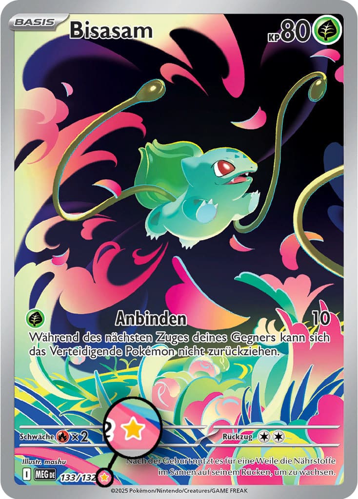 Die Mega-Attacken-Karten feiern ihre Premiere im neuesten Spezialset Erhabene Helden, das am 30. Januar 2026 in Deutschland erscheint. Diese geprägten Sammlerstücke beeindrucken mit farbenfrohen Zeichnungen im Comicstil. Auf den internationalen Karten ist die Attackenbezeichnung des Mega-Pokémon-ex zudem auf Japanisch in der Illustration zu sehen, während sie auf den asiatischen Karten in englischer Sprache dargestellt wird. Die Karten sind durch zwei Sterne in pinker und grüner Farbe neben der Kartennummer gekennzeichnet. Derzeit ist noch nicht bekannt, wie häufig Mega-Attacken-Karten in den Boosterpacks auftauchen.