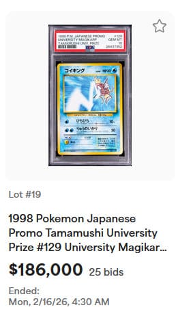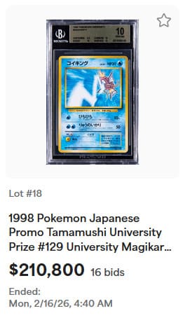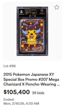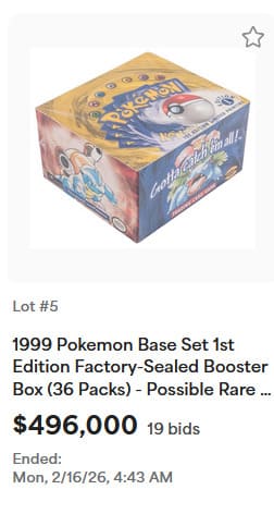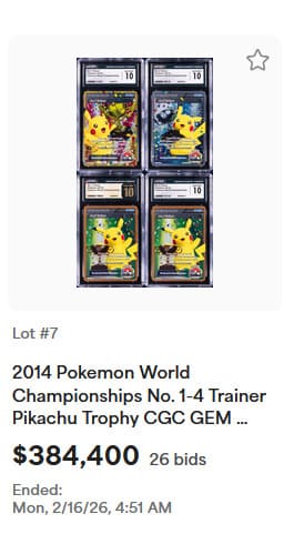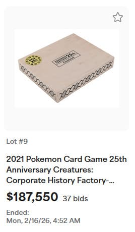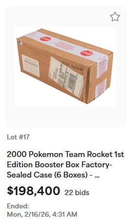 Darüber hinaus konnten bei der Auktion zahlreiche seltene Pokémon-Sammlerstücke neue Rekordpreise erzielen, darunter holografische Karten aus dem Basis-Set, exklusive Trophäenkarten sowie originalverpackte Booster-Displays.