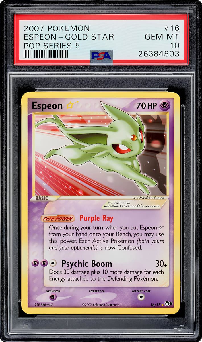 Psiana-Goldstar stammt aus der POP-Serie 5, einer speziellen Erweiterung, die ausschließlich im Jahr 2007 in limitierten Promo-Boosterpacks an Teilnehmer von Pokémon Organized Play-Turnieren verteilt wurde. Die Chance, ein solches Psiana aus diesen Boosterpacks zu ziehen, ist extrem niedrig, was es zu einem besonders begehrten Sammlerstück macht. Der Handelswert ist in den letzten Jahren deutlich gestiegen: Englische PSA-10-Exemplare werden zum Zeitpunkt dieses Artikel für bis zu 78.000 US-Dollar (ca. 67.600 €) gehandelt. Damit hat sich der Marktwert seit Oktober 2025 mehr als verdoppelt.