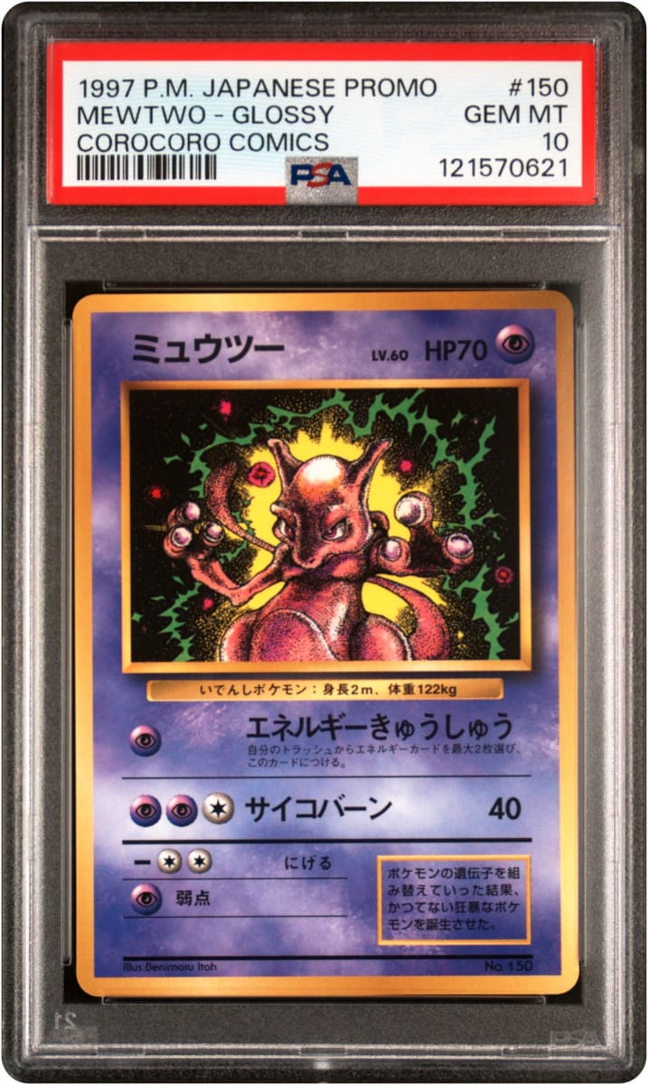 Diese seltene Mewtu-Promokarte war als Beilage in der Juni-1997-Ausgabe des japanischen Manga-Magazins „CoroCoro Comics“ erhältlich. International wurde sie erstmals im Jahr 2000 als Wizards Black Star Promo veröffentlicht. Im Gegensatz zum internationalen Nachdruck zeichnet sich das japanische Original durch eine glänzende Oberfläche aus. Der aktuelle Marktwert für PSA-10-Exemplare liegt bei bis zu 30.000 US-Dollar (ca. 26.000 €).
