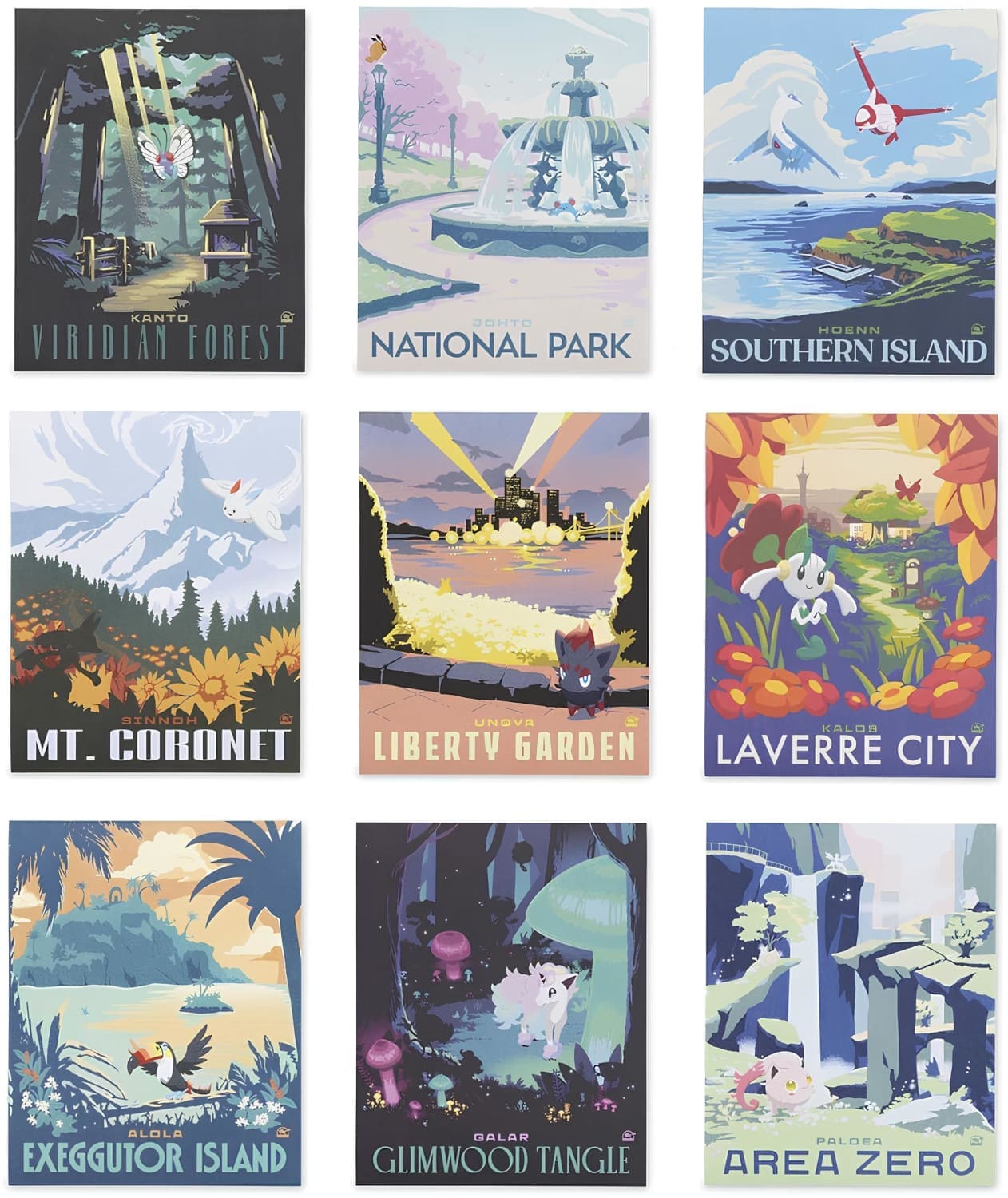 Die Serie umfasst zahlreiche Artikel, darunter Kartenhüllen, eine Deckbox und eine Spielunterlage für das Pokémon-Sammelkartenspiel. Die Illustrationen ermöglichen Trainern eine Reise an die schönsten Orte der verschiedenen Pokémon-Regionen und zeigen niedliche Pokémon wie Brüllschweif, Marill oder Floette.