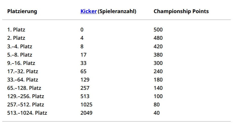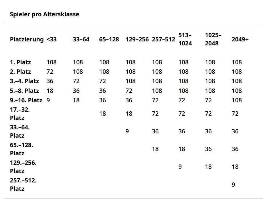 Die endgültige Auszahlung der Championship-Points richtet sich nach der Teilnehmerzahl pro Altersklasse.