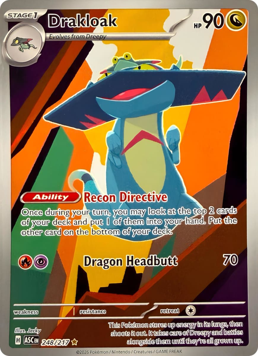 Mega-Dragorans Attacke „Ryuno-Gleiter“ verursacht beeindruckende 330 Schadenspunkte, jedoch musst du zwei Energien auf deinen Ablagestapel legen. Besonders hilfreich ist zudem seine Fähigkeit „Himmelstransport“. Diese ermöglicht es dir, einmal während deines Zuges dein aktives Pokémon gegen ein Pokémon auf deiner Bank auszutauschen.