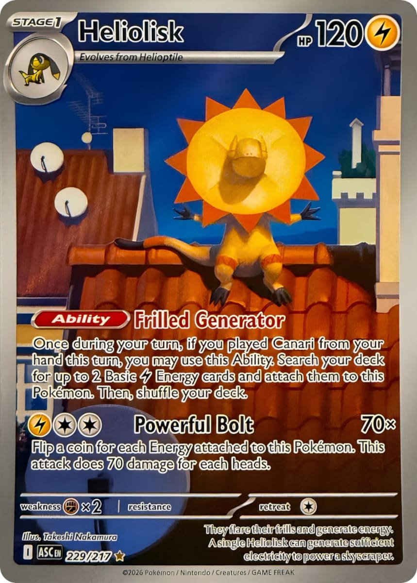 Einmal während deines Zuges, wenn du Canary während dieses Zuges aus deiner Hand gespielt hast, kannst du diese Fähigkeit einsetzen. Durchsuche dein Deck nach bis zu 2 Basis-Elektro-Energiekarten und lege sie an dieses Pokémon an. Mische anschließend dein Deck.