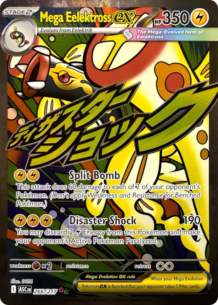 Katastrophenschock – 190 Schadenspunkte. Du kannst 2 Elektro-Energien von diesem Pokémon auf deinen Ablagestapel legen. Wenn du das machst, ist das Aktive Pokémon deines Gegners jetzt paralysiert.