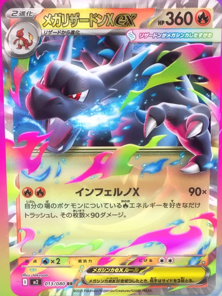 In Japan feiert Mega-Glurak X sein Debüt in der Erweiterung M2: Inferno X die am 26. September 2025 erscheint. Die hier gezeigten Karten werden voraussichtlich im High Class Pack M2a: Mega Dream ex enthalten sein, das 28. November 2025 auf den Markt kommt.