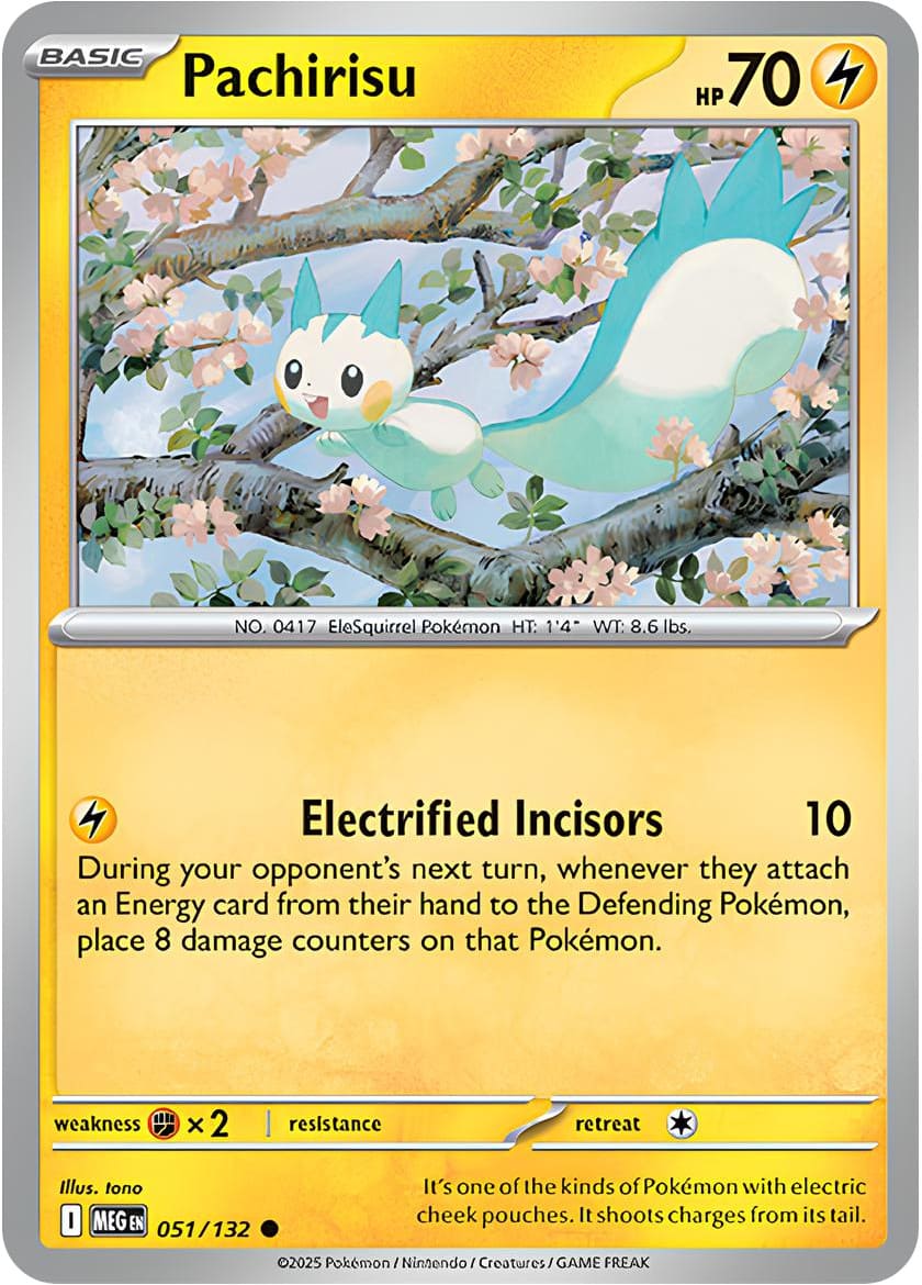 Das niedliche Pachirisu setzt deinen Gegner mit seiner Attacke „Elektrisierte Nagerei“ unter Strom! Sie verursacht zwar nur 10 Schadenspunkte, hält jedoch eine fiese Überraschung bereit: Legt dein Gegner während seines nächsten Zuges eine Energiekarte an das verteidigende Pokémon an, darfst du ganze 8 Schadensmarken darauf legen.
