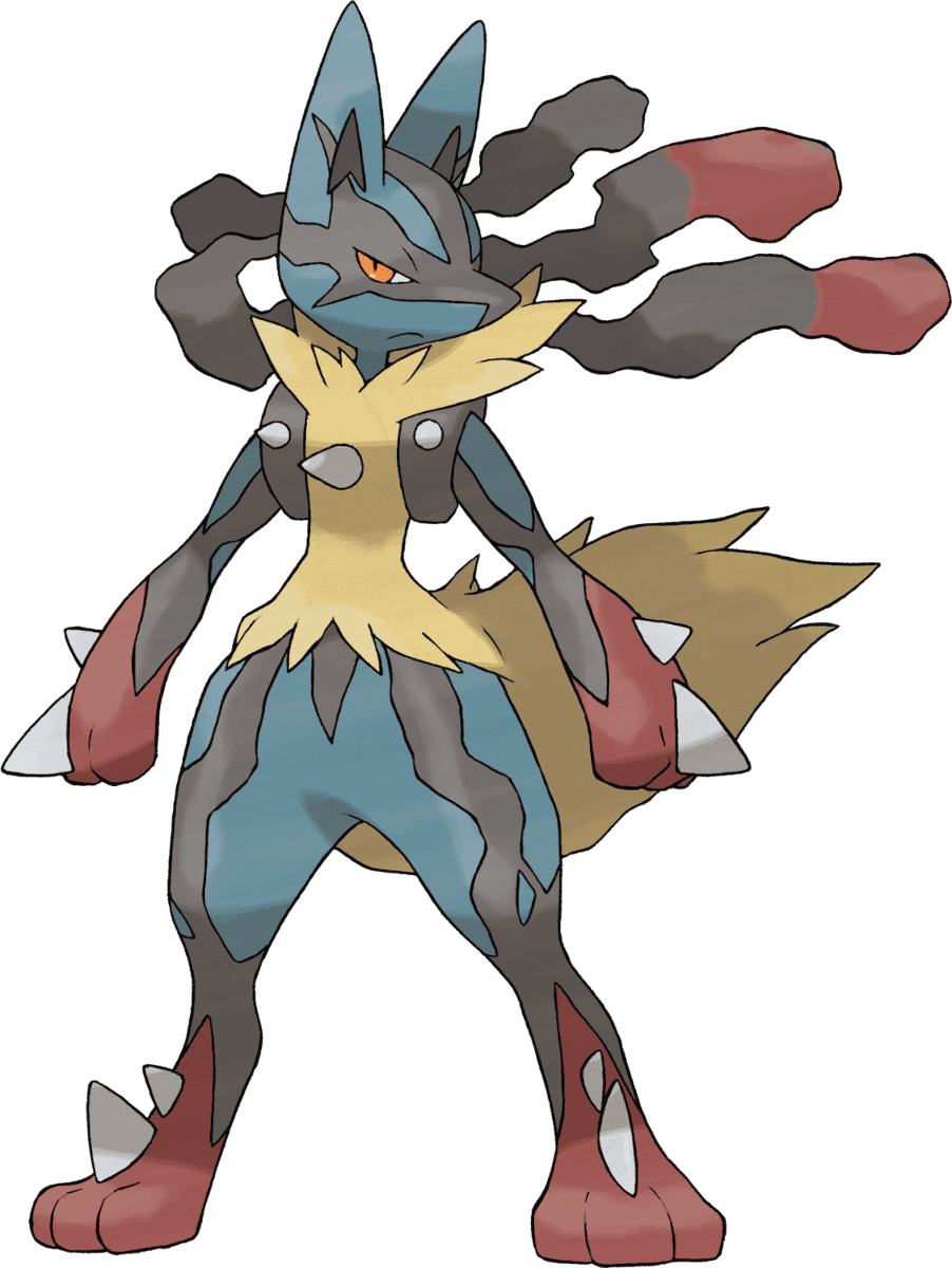 Entfesselt Lucario seine Mega-Form, durchströmt eine explosive Mischung aus Energie seinen Körper und verstärkt seine ohnehin beeindruckenden Fähigkeiten. Es erhält zudem ein deutlich wilderes Aussehen.