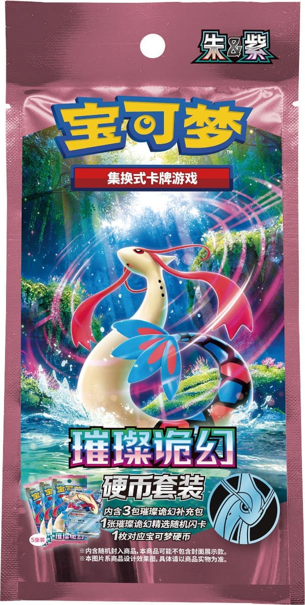 Gemeinsam mit Brilliant Elegance erscheint auch ein neuartiges Coin Set. Es enthält drei Boosterpacks mit jeweils fünf Karten, eine zufällig ausgewählte holografische Karte und eine Sammlermünze. Der empfohlene Verkaufspreis beträgt 39 Yuan (ca. 4,70 €).
