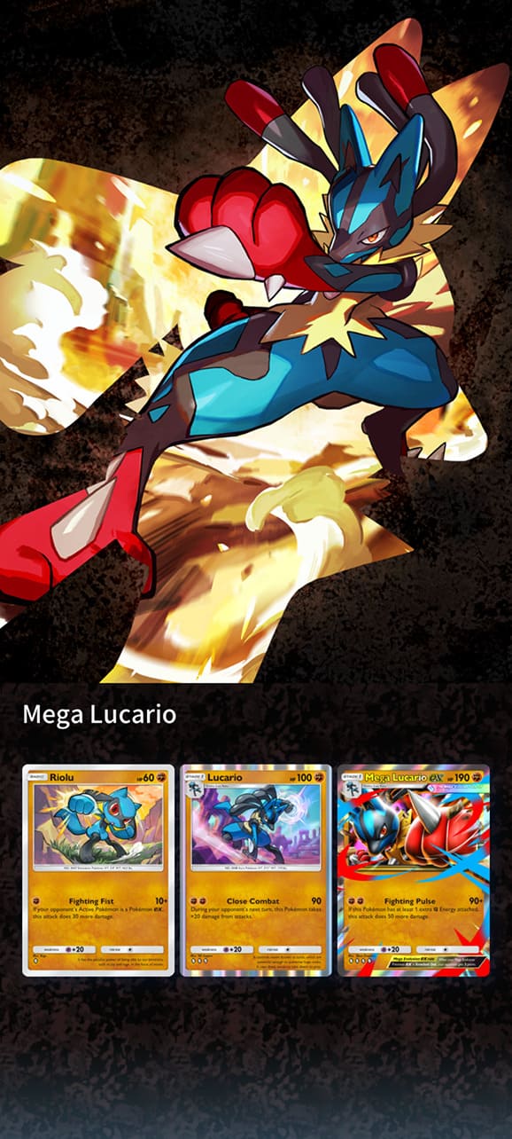 Lucario zählt zu den fähigsten Kämpfern der Pokémon-Welt. Seine geheimnisvolle Aura erlaubt es ihm, selbst in völliger Dunkelheit die Bewegungen unsichtbarer Pokémon wahrzunehmen. Außerdem kann es das Wesen und die Gefühle seines Gegenübers lesen. Entfesselt Lucario seine Mega-Form, durchströmt eine explosive Mischung aus Energie seinen Körper und verstärkt seine ohnehin beeindruckenden Fähigkeiten. Es erhält zudem ein deutlich wilderes Aussehen.