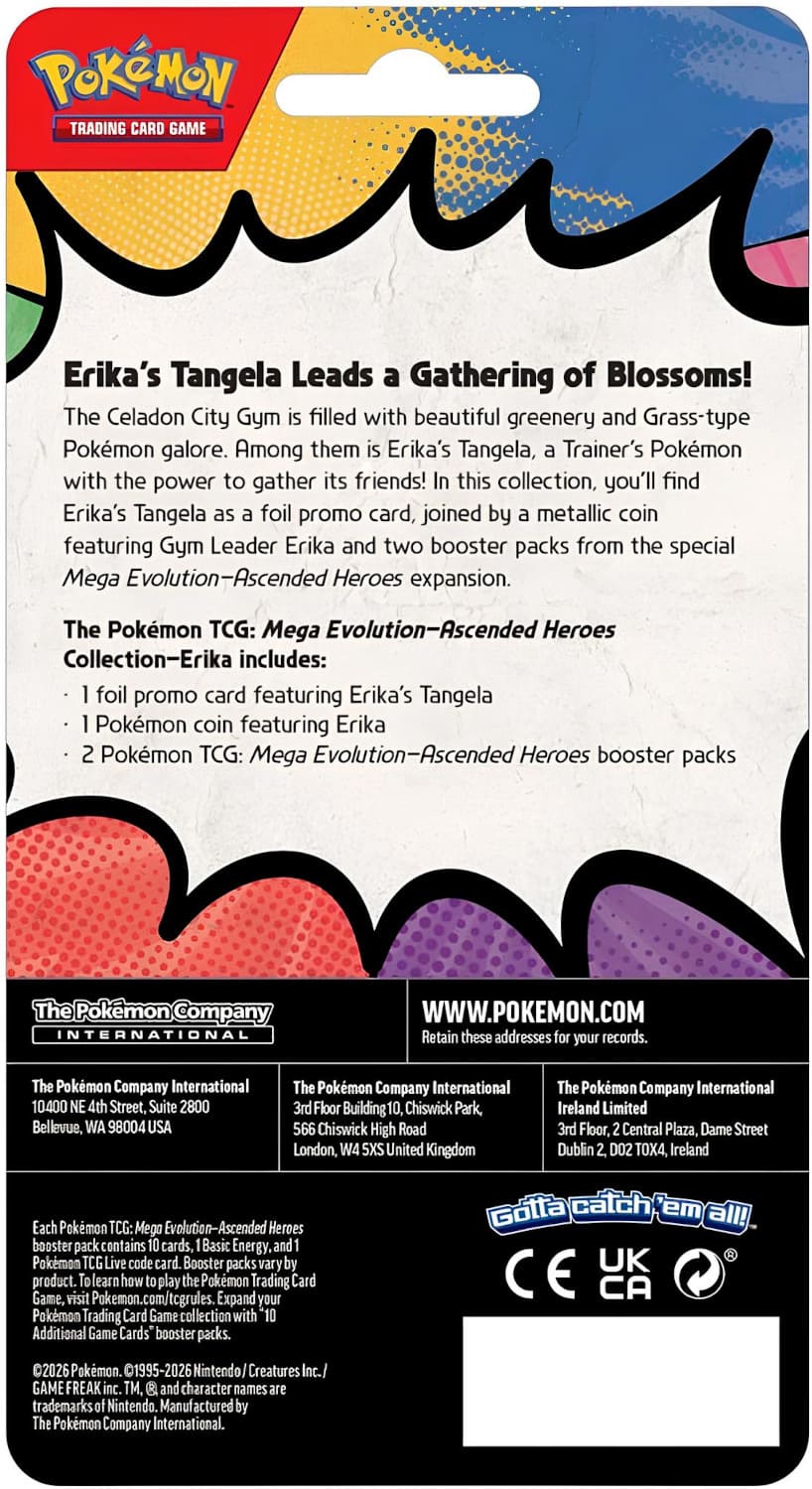 Jeder Blister enthält zwei Boosterpacks aus Erhabene Helden, eine holografische Promokarte mit Erikas Tangela oder Aokis Koalelu sowie eine passende Münze. Bislang wurden nur die englischen Varianten enthüllt. Ob die Checklane-Blister auch auf Deutsch erscheinen, ist derzeit nicht bekannt.