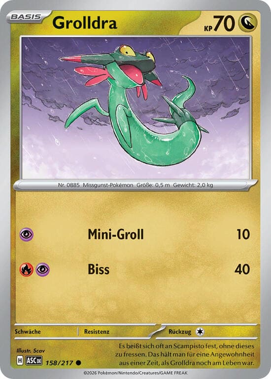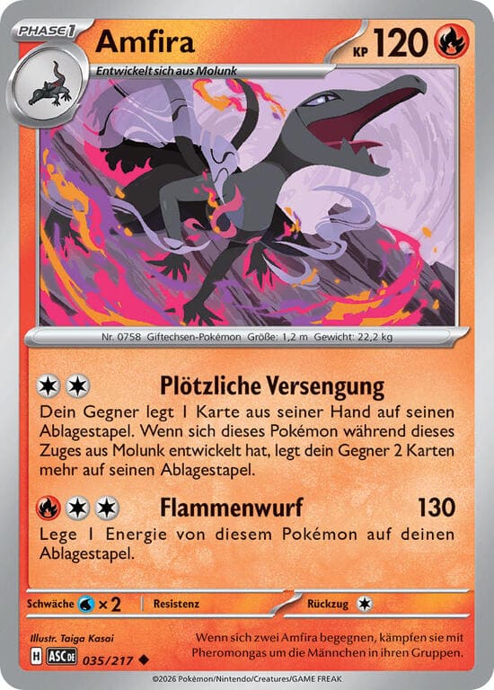 Plötzliche Versengung – Dein Gegner legt 1 Karte aus seiner Hand auf seinen Ablagestapel. Wenn sich dieses Pokémon während dieses Zuges aus Molunk entwickelt hat, legt dein Gegner 2 Karten mehr auf seinen Ablagestapel.