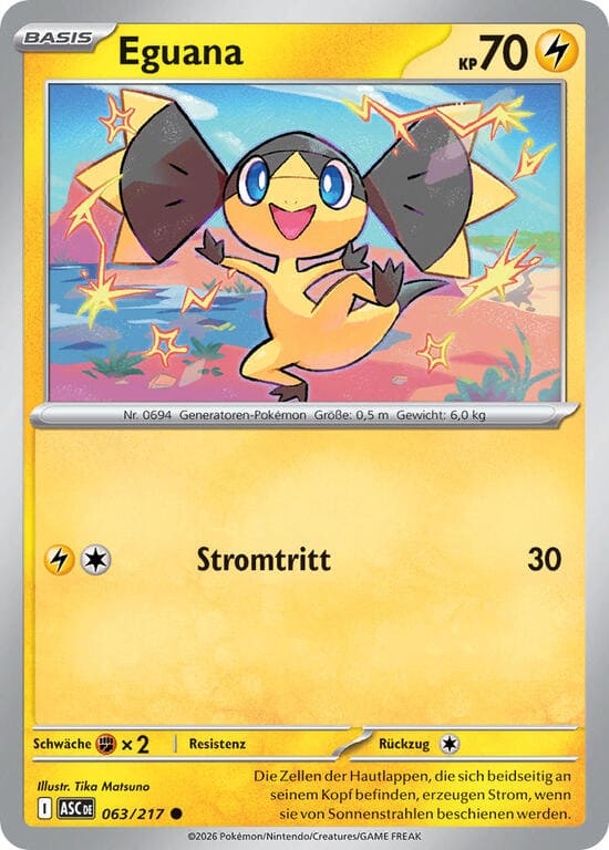 Du musst 1 Basis-Elektro-Energie von diesem Pokémon auf deinen Ablagestapel legen, um diese Fähigkeit einzusetzen. Einmal während deines Zuges kannst du so lange Karten ziehen, bis du 6 Karten auf deiner Hand hast.