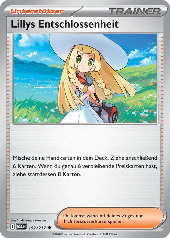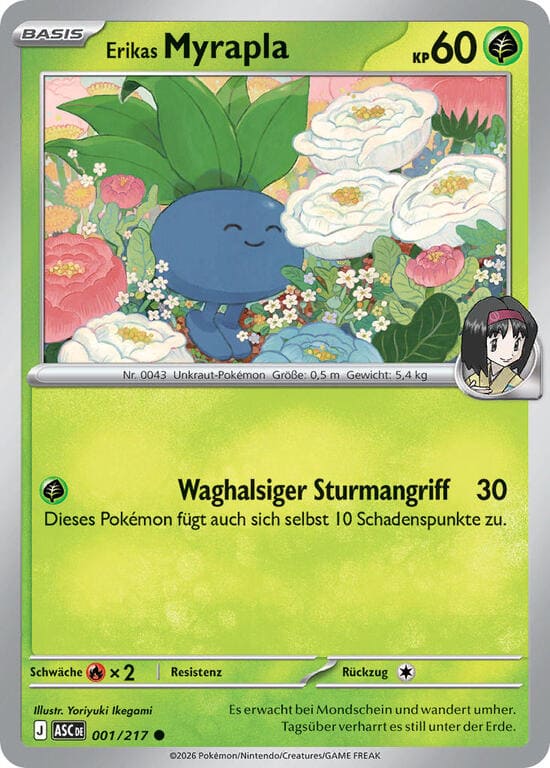 Einmal während deines Zuges kannst du diese Fähigkeit einsetzen. Durchsuche dein Deck nach 1 Erikas Pokémon, zeige es deinem Gegner und nimm es auf deine Hand. Mische anschließend dein Deck.