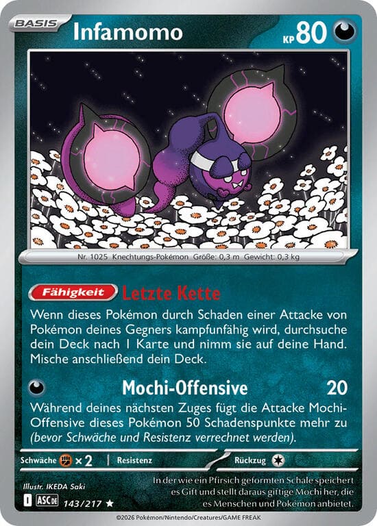 Mochi-Offensive – 20 Schadenspunkte. Während deines nächsten Zuges fügt die Attacke Mochi-Offensive dieses Pokémon 50 Schadenspunkte mehr zu (bevor Schwäche und Resistenz verrechnet werden).