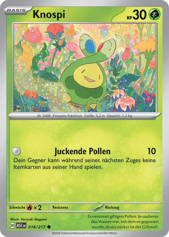 Stachelspore – 40 Schadenspunkte. Wirf 1 Münze. Bei Kopf ist das Aktive Pokémon deines Gegners jetzt paralysiert.