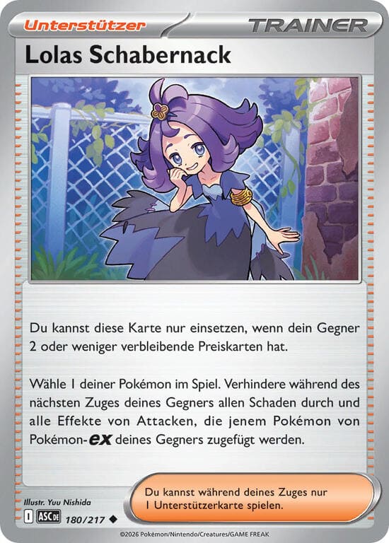 Tücke – Durchsuche dein Deck nach 1 Unterstützerkarte, zeige sie deinem Gegner und nimm sie auf deine Hand. Mische anschließend dein Deck.