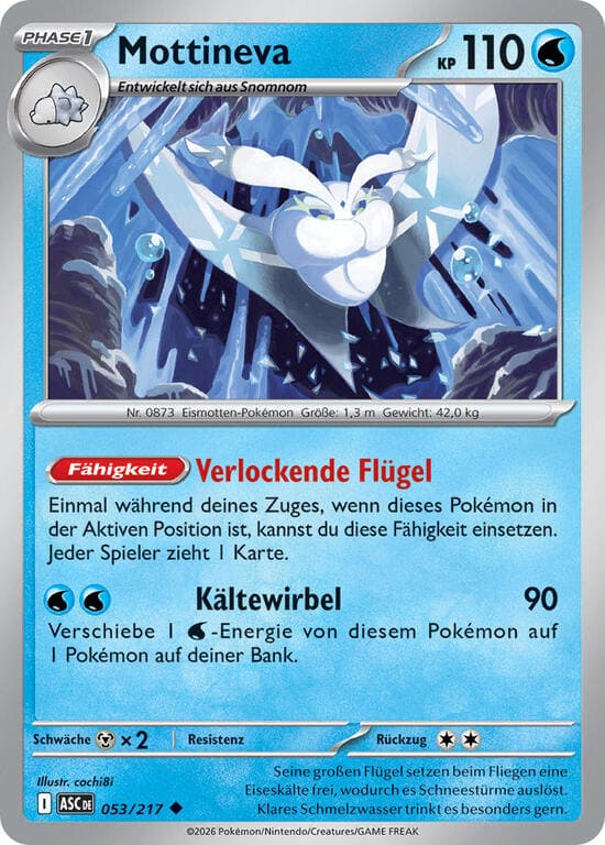 Kältewirbel – 90 Schadenspunkte. Verschiebe 1 Wasser-Energie von diesem Pokémon auf 1 Pokémon auf deiner Bank.