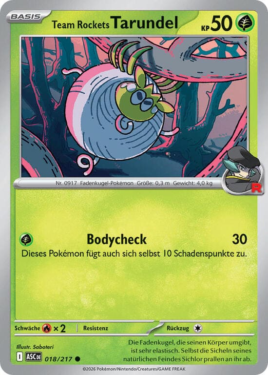 Wirf eine Münze. Durchsuche bei Kopf dein Deck nach 1 Entwicklungs-Team-Rockets-Pokémon, zeige es deinem Gegner und nimm es auf deine Hand. Durchsuche bei Zahl dein Deck nach 1 Basis-Team-Rockets-Pokémon, zeige es deinem Gegner und nimm es auf deine Hand. Mische anschließend dein Deck.