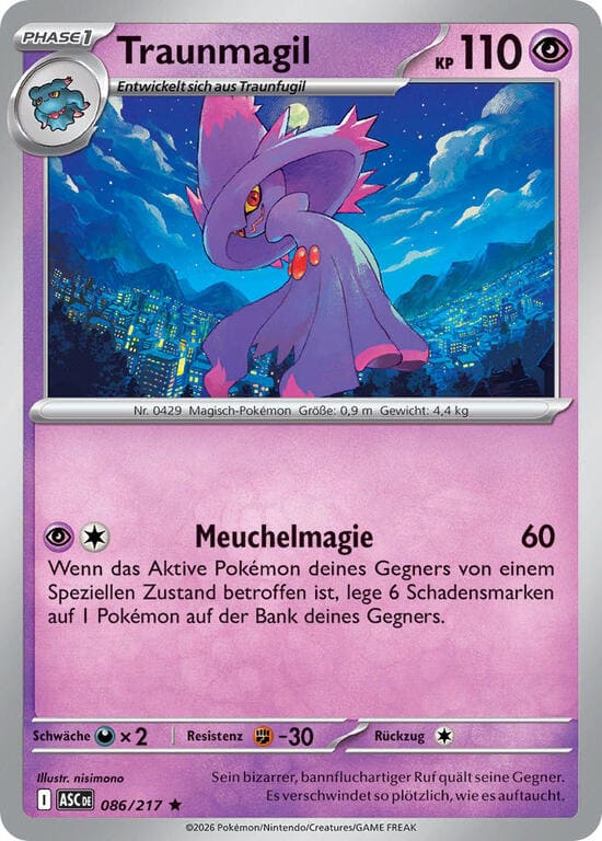 Dämmergift – 100 Schadenspunkte. Das Aktive Pokémon deines Gegners schläft jetzt und ist vergiftet.