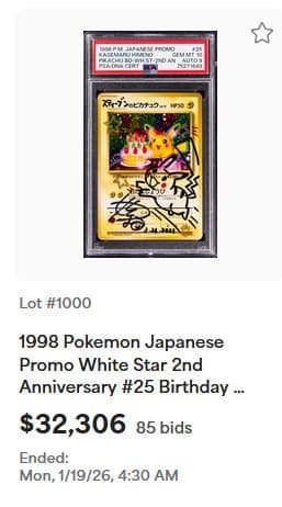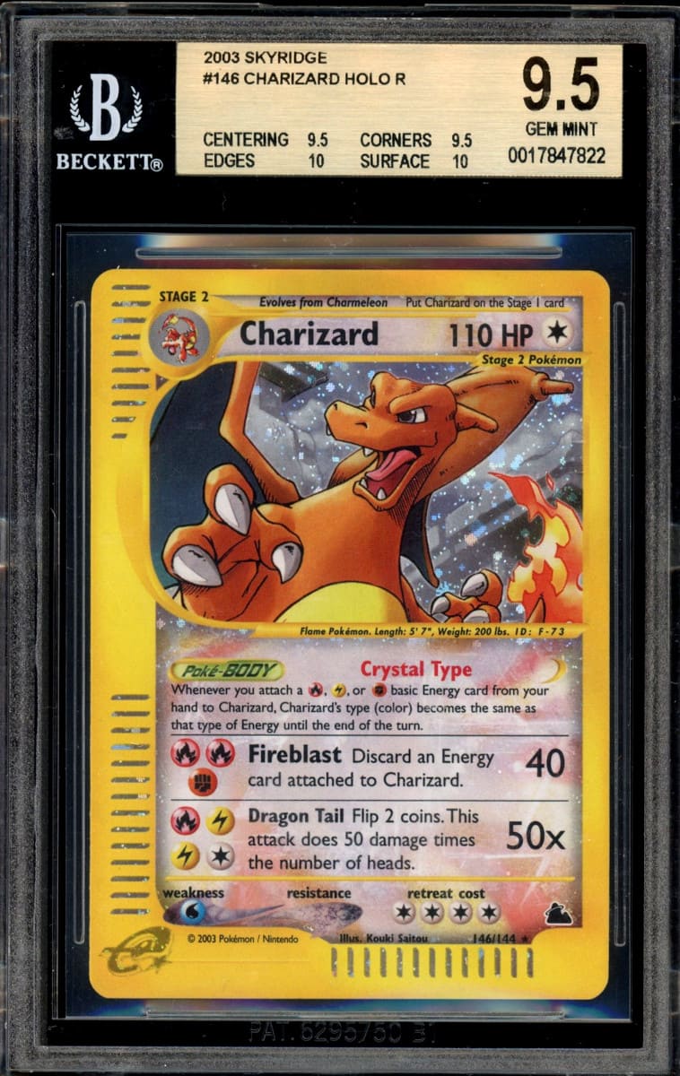 Einen bemerkenswerten Preis von 115.100 US-Dollar (ca. 98.100 €) erzielte zudem eine beinahe makellose CGC-10-Karte von Glurak aus dem Base Set. Dasselbe Exemplar wurde im Dezember 2025 für 106.250 US-Dollar versteigert.