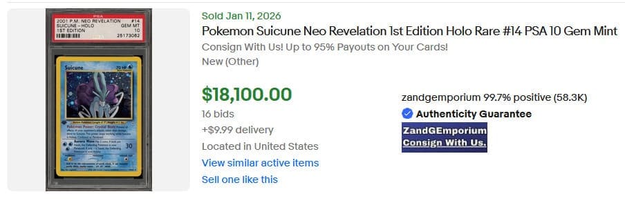 Neo Revelation erschien am 21. September 2001 in einer limitierten Erstauflage und wurde von den mächtigen Raubkatzen Raikou, Entei und Suicune angeführt. Ihre begehrten holografischen Sammelkarten sind in den vergangenen Monaten deutlich im Wert gestiegen. Am 11. Januar 2026 wurden drei englische PSA-10-Exemplare für jeweils über 15.000 US-Dollar versteigert.