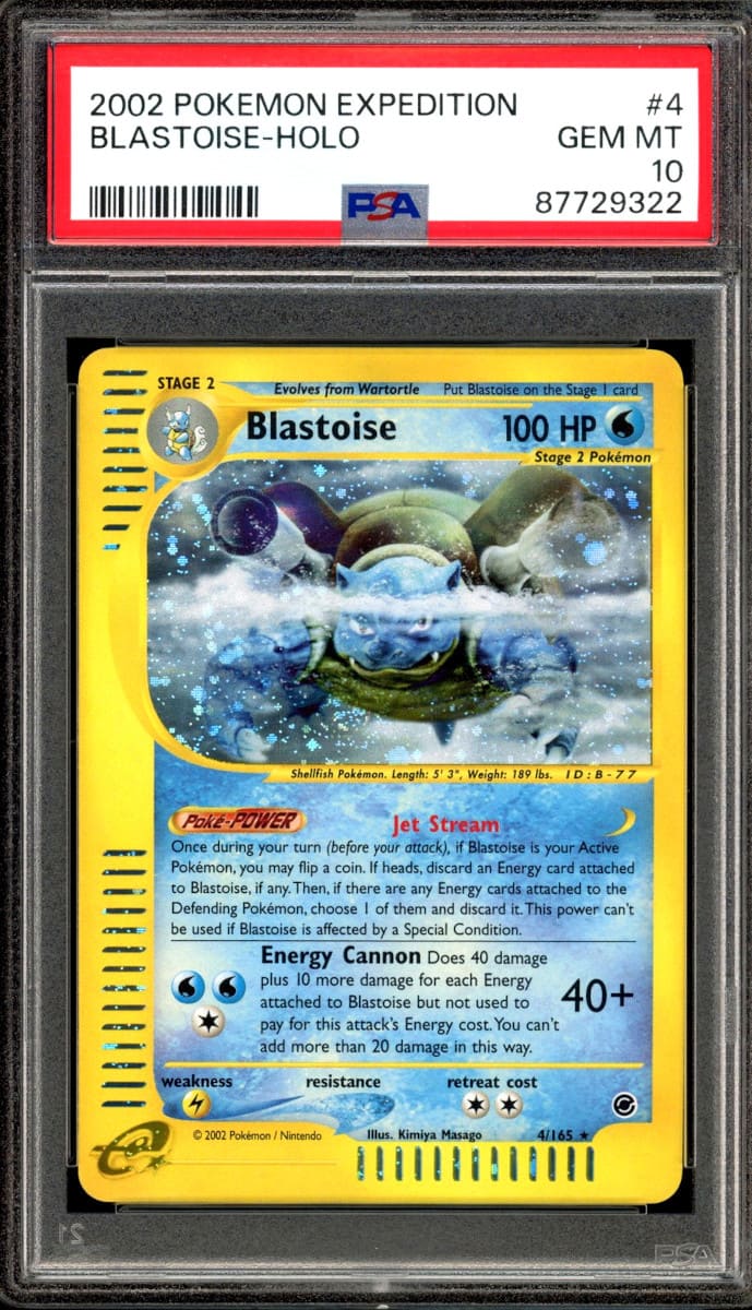 Im Jahr 2003 eröffnete das Expedition Basis-Set eine neue Ära im Pokémon-Sammelkartenspiel. Besonders herausragend waren die neuen Kartendesigns, die sich durch abgerundete Artwork-Fenster und breite Kartenränder auszeichnen. Neben Glurak und Gengar enthält das Set auch eine holografische Karte von Turtok, die derzeit für bis zu 14.900 US-Dollar (ca. 12.800 €) gehandelt wird.
