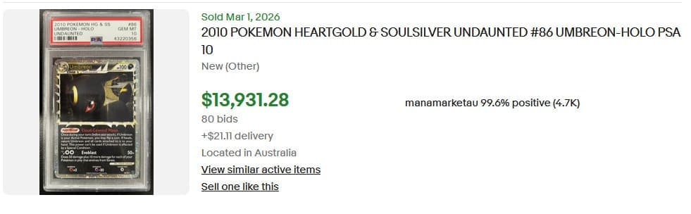 Nachtara-Prime aus der Erweiterung HS – Unerschrocken zählt zu den beliebtesten Karten dieser Ära. PSA-10-Exemplare wechseln aktuell für bis zu 13.900 US-Dollar (ca. 11.900 €) den Besitzer.