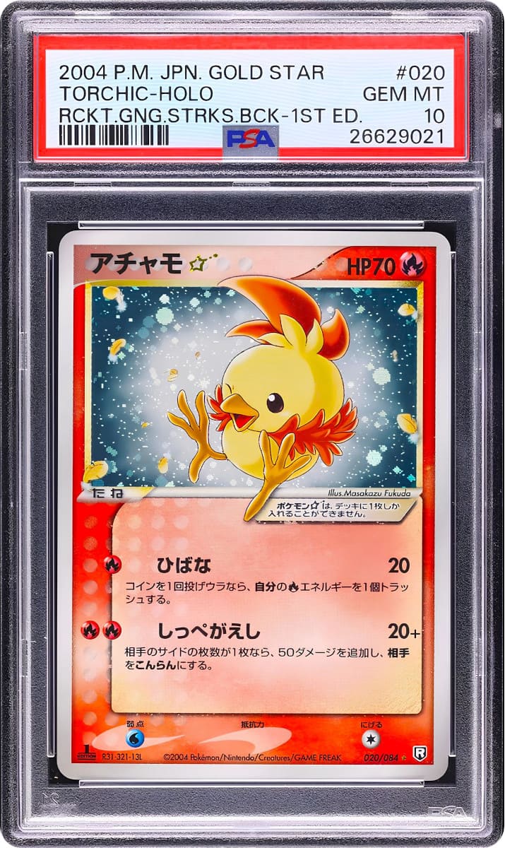 Das niedliche Küken-Pokémon Flemmli erreicht mit seiner japanischen Goldstar-Karte aus der Erweiterung Rocket Gang Strikes Back (EX Team Rocket Returns) aktuell einen Marktwert von bis zu 50.400 US-Dollar (ca. 43.300 €). Im Juli 2025 war dieselbe Karte noch für 20.000 US-Dollar (ca. 17.200 €) erhältlich.