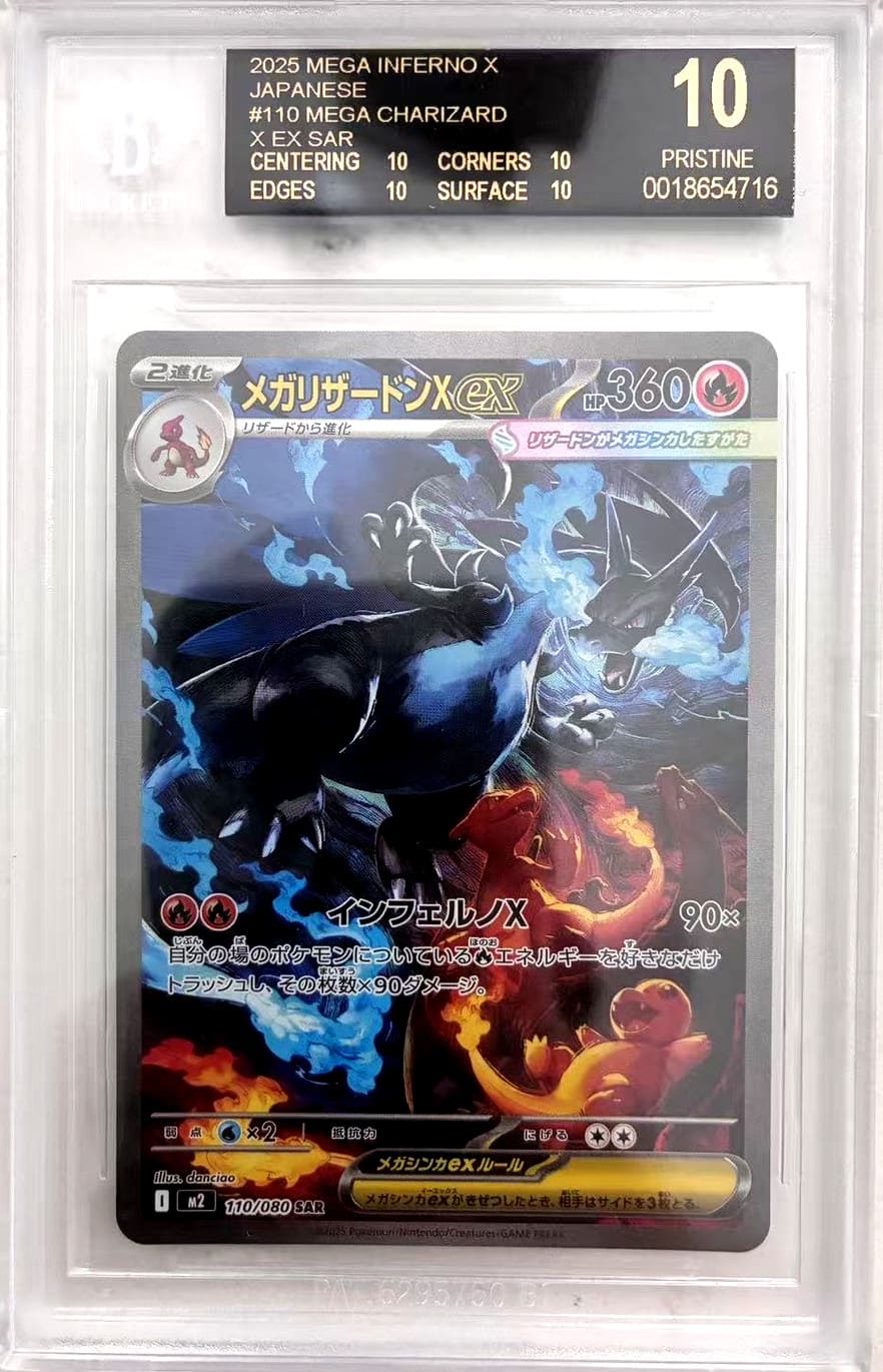 Das neueste japanische Pokémon-Set Inferno X wurde vor wenigen Tagen veröffentlicht und enthält eine atemberaubende Special-Art-Rare-Karte von Mega-Glurak-ex, die schon jetzt zweifellos zu den begehrtesten modernen Sammlerstücken des Jahres gehört. Eines der ersten makellosen BGS-10-Exemplare mit dem begehrten Black Label erzielte bei eBay am 6. Oktober 2025 einen beeindruckenden Verkaufspreis von 15.300 US-Dollar (ca. 13.100 €).