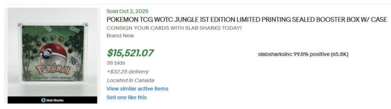Ein Sammler investierte am 2. Oktober 15.521 US-Dollar (ca. 13.300 €) in ein originalverpacktes englisches Booster-Display aus der limitierten Erstauflage von Dschungel.