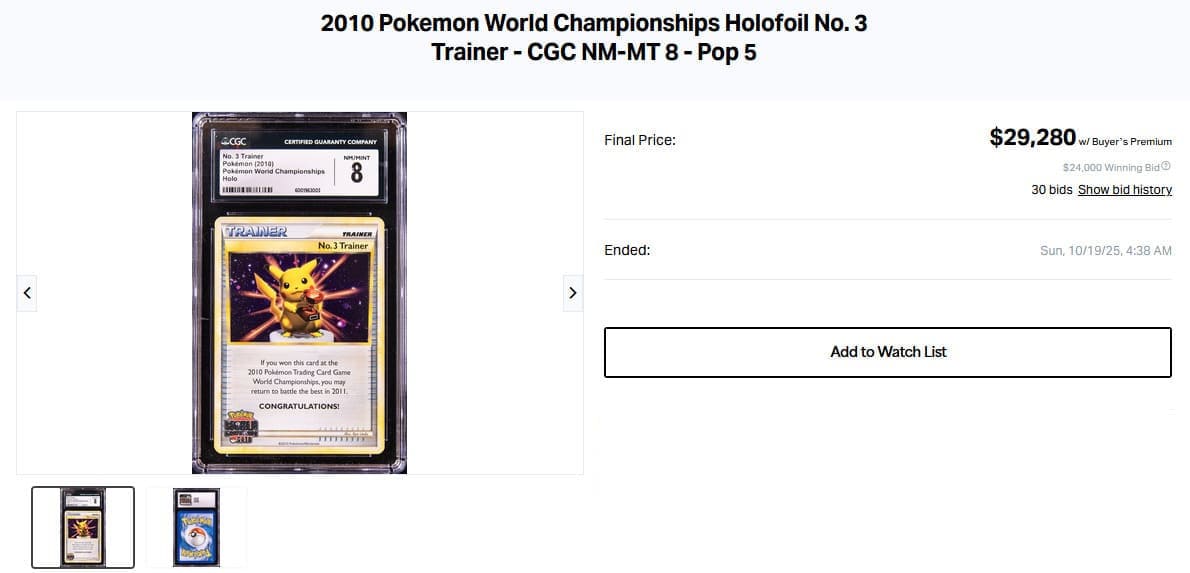 Darüber hinaus wurden englische PSA-10-Karten von Simsala, Piepi, Magneton und Zapdos für jeweils über 20.000 US-Dollar versteigert.