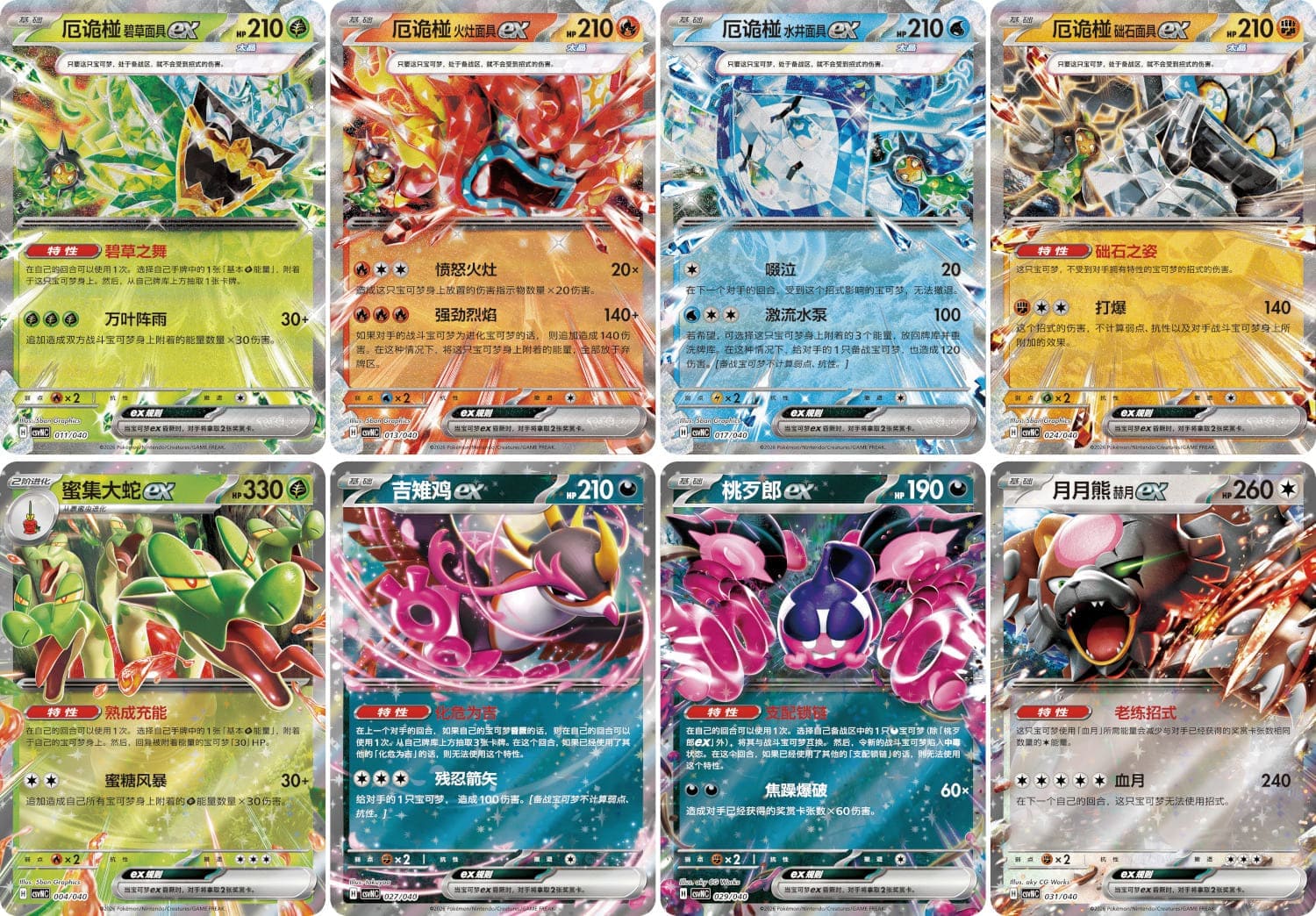 Die neuen Gift Box Sets ermöglichen Trainern eine spannende Reise in die mysteriöse Kitakami-Provinz, wo das freche Masken-Pokémon Ogerpon sein Unwesen treibt. Insgesamt gibt es vier Varianten, die im Design der verschiedenen Masken von Ogerpon gestaltet sind. Jede Kollektion enthält sieben Boosterpacks, 64 Kartenhüllen, Schadensmarken, einen Würfel und einen Ogerpon-Sticker. Der empfohlene Verkaufspreis beträgt 390 Yuan (ca. 48 €).