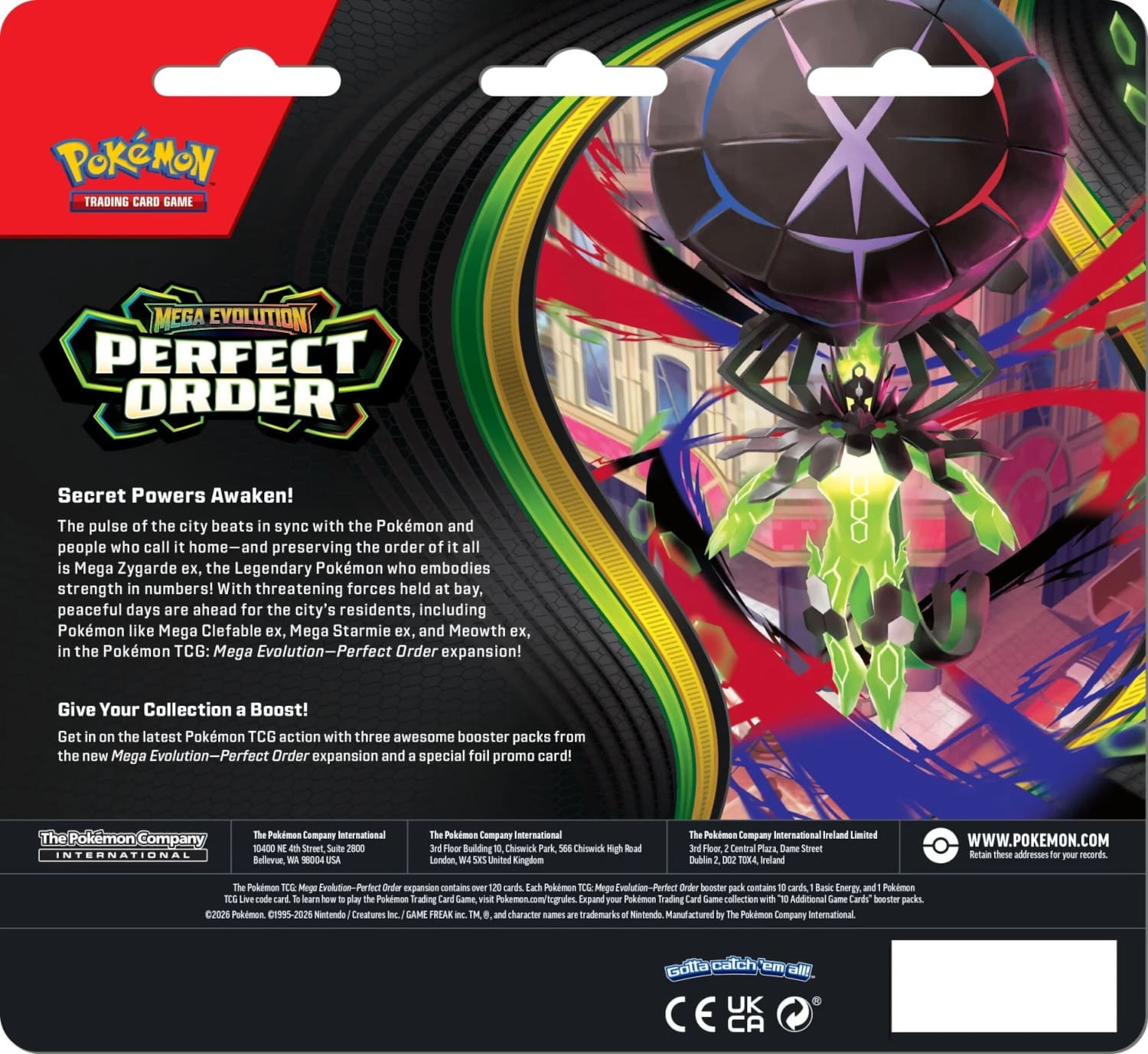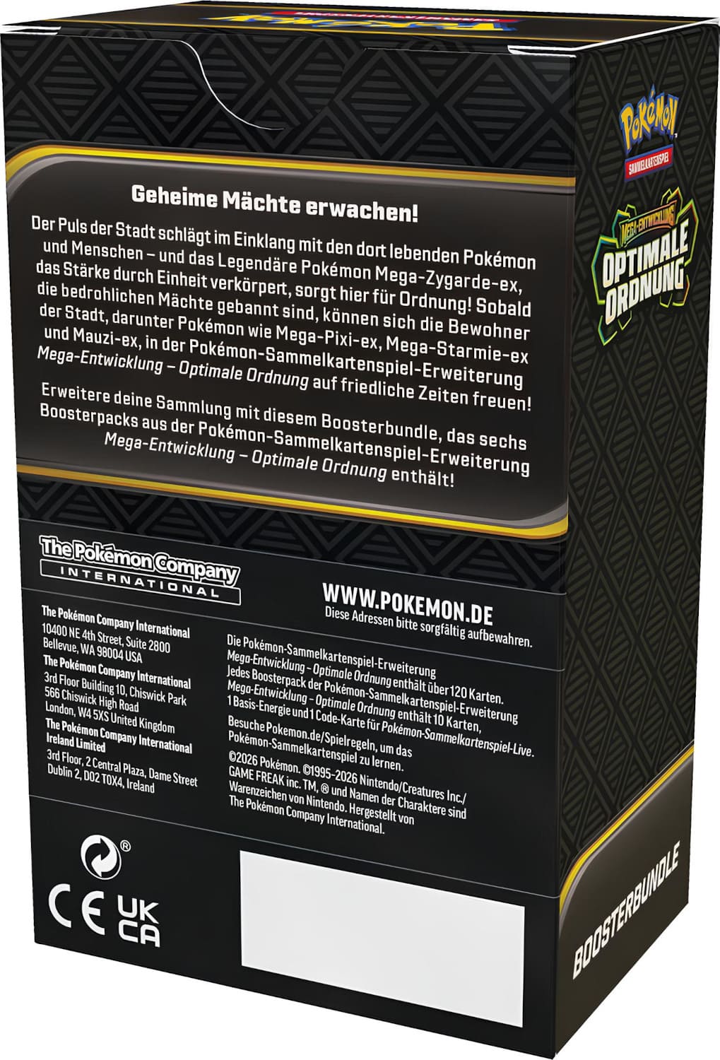 Am 27. März 2026 erscheint die dritte Haupterweiterung aus der neuen Mega–Serie des Pokémon-Sammelkartenspiels: Optimale Ordnung. Trainer dürfen sich auf das Debüt des legendären Ordnungs-Pokémon Zygarde als mächtiges Mega-Entwicklungs-Pokémon-ex freuen. Spieler können Karten mit Mega-Zygarde-ex und Mega-Starmie-ex sowie neue Pokémon-ex-Karten entdecken und sammeln, die ihren ersten Auftritt in der Serie Mega-Entwicklung feiern. Außerdem handelt es sich um die erste Pokémon-Sammelkartenspiel-Erweiterung der neuen Serie, die in Illumina City spielt – dem Schauplatz der spannenden Ereignisse aus Pokémon-Legenden: Z-A.