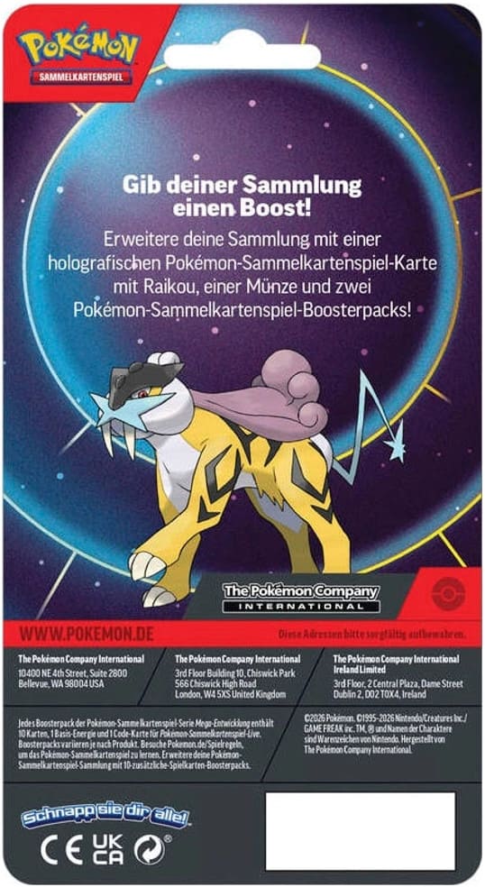 Booster-Blister sind ein ideales Einsteigerprodukt für das Pokémon-Sammelkartenspiel und eignen sich hervorragend für neue Trainer oder als kleines Geschenk zwischendurch. Die neueste 2er-Pack-Version ist ab Januar 2026 online und bei teilnehmenden Händlern erhältlich. Der Blister enthält neben zwei Boosterpacks auch eine holografische Pokémon-Karte sowie eine besondere Münze mit Raikou.