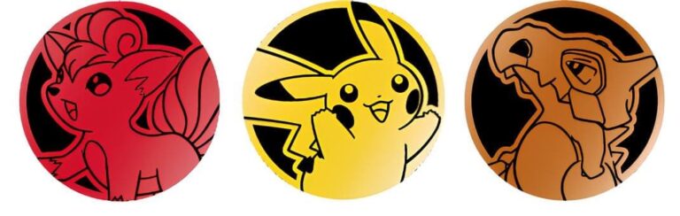 Jede Box enthält eine Münze, die dem enthaltenen Pokémon entspricht. Es gibt häufige Münzen in unterschiedlichen Farben sowie eine versteckte Münzen mit Glitzer-Effekten.