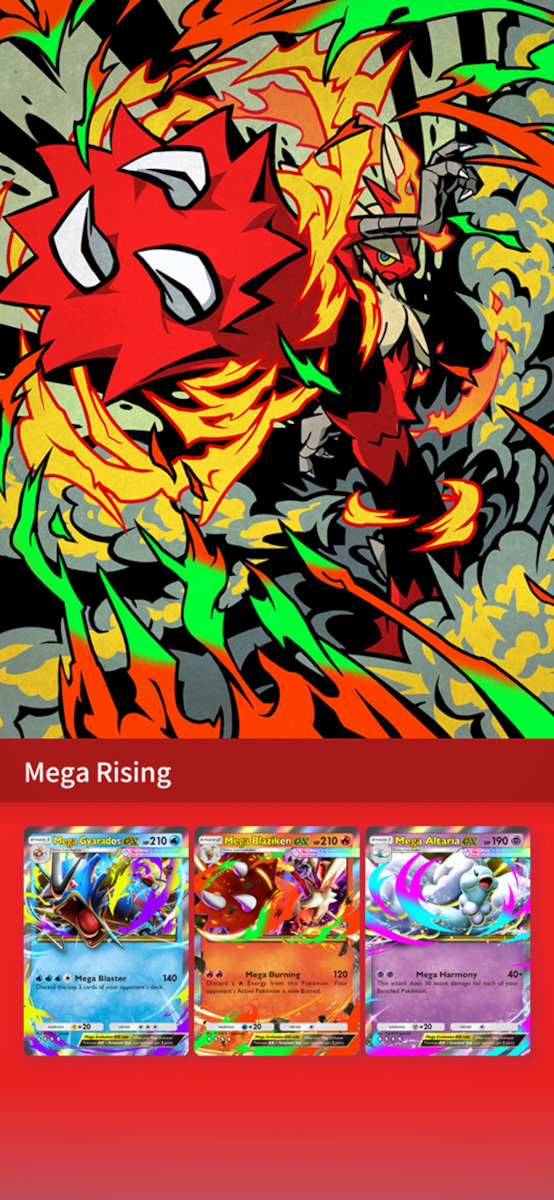 Mega-Aufstieg wird mehr als 100 brandneue Pokémon-Karten enthalten. Es handelt sich um das erste Hauptset der neuen Serie B für Pokémon-Sammelkartenspiel-Pocket. Neben Garados, Lohgock und Altaria werden auch Ampharos, Absol und Pinsir in ihren mächtigen Mega-Formen erscheinen. Bisher wurden elf Karten offiziell enthüllt.